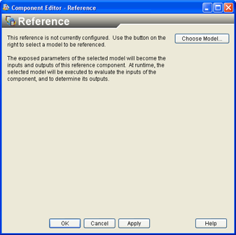 The remote partner access is the primary means of enabling SIMULIA Execution Engine Federation (Business-to-Business) capabilities. In the Reference component, the remote partner access allows you to select a model that resides at a partner organization (which has a SIMULIA Execution Engine) and insert a reference to it within your own simulation process flow. When you execute this component as part of your simulation process flow, Isight makes the appropriate connection to the partner SIMULIA Execution Engine (which executes the remote model) and receives the output from that remote execution. With this capability, various organizations can collaborate on an overall product design by contributing analysis and design results from their own specialty areas of responsibility, while still maintaining the proprietary nature of their data and methods. For more information about using SIMULIA Execution Engine Federation, refer to the SIMULIA Execution Engine Federation (B2B) Guide. For more information about other referencing options, see Using Submodels and Referenced Models in the Isight User’s Guide. The following figure shows an example of the Reference Component Editor before a model has been selected: