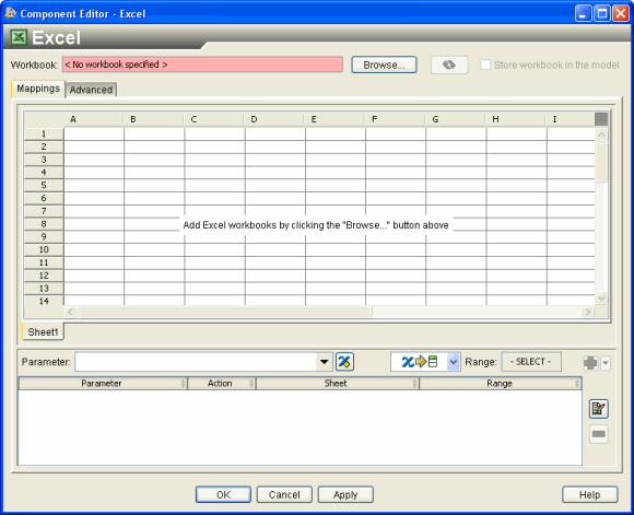 A component can actually have multiple editors defined for different levels of users (e.g., from wizards or simplified interfaces to ones loaded with advanced options) or for access from different clients (custom interfaces, Web browsers, PDAs, etc.). This document considers the development of a standard editor for the Isight Design Gateway interface. The following figures show examples of editors for various components, which are accessed either by double-clicking the component in the simulation process flow or right-clicking the component and selecting Edit. For more editor access options, see Opening the Component Editors in the Isight User’s Guide. Examples of Component Editors in the Isight