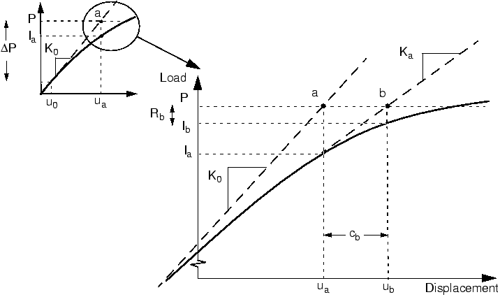 is zero at every degree of freedom in the model, point a in Figure 8–9 would lie on the load-deflection curve, and the structure would be in equilibrium. In a nonlinear problem it is almost impossible to have