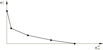 If the postfailure relation is defined in terms of stress versus strain, the failure strain must be given as the failure criterion. If the postfailure relation is defined in terms of stress versus displacement or stress versus fracture energy, the failure displacement must be given as the failure criterion. The failure strain (displacement) can be specified as a function of temperature and/or predefined field variables.