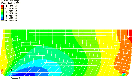 The contours of maximum principal stress (Figure 10–58) show that the very localized stress in that corner has been reduced only slightly.